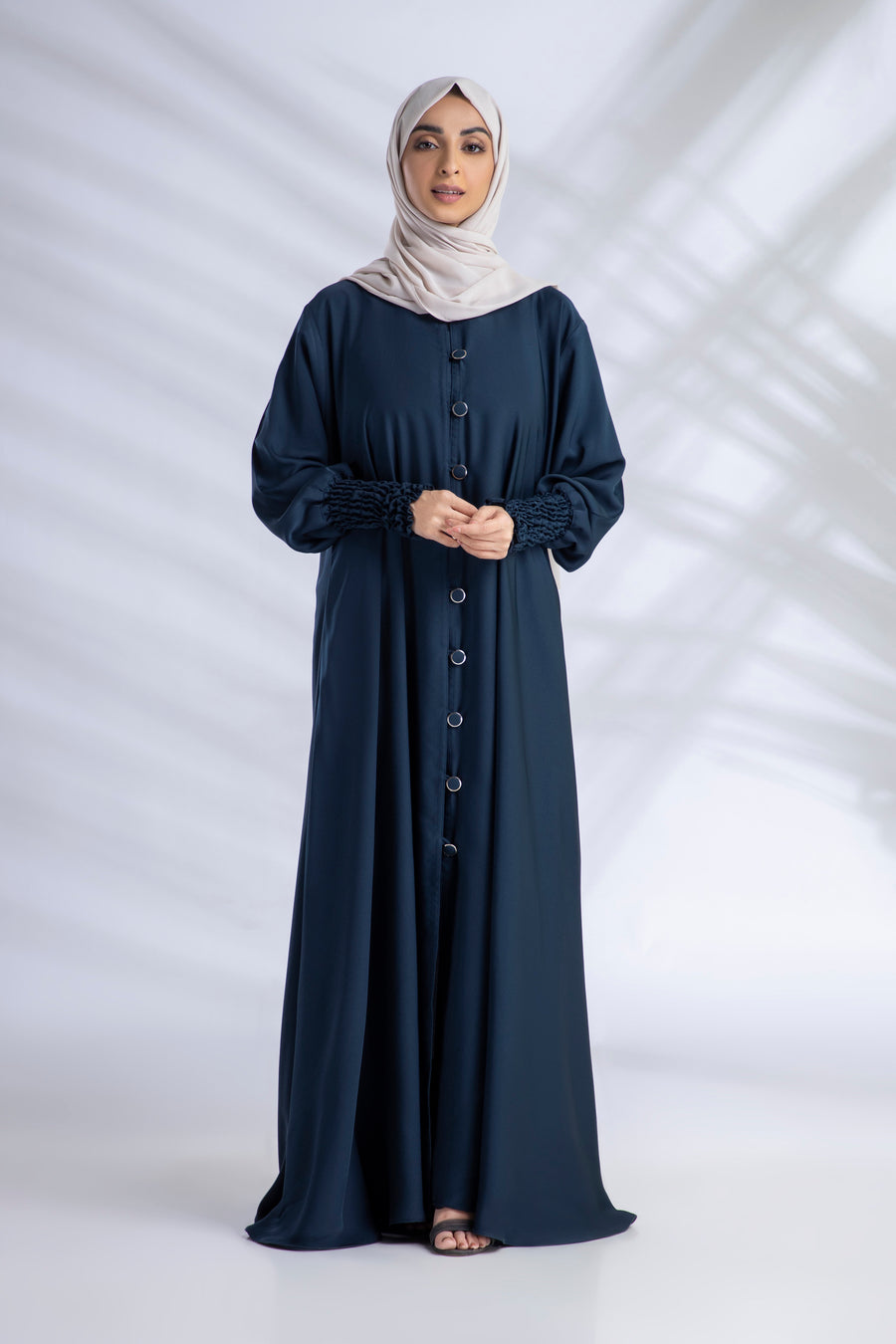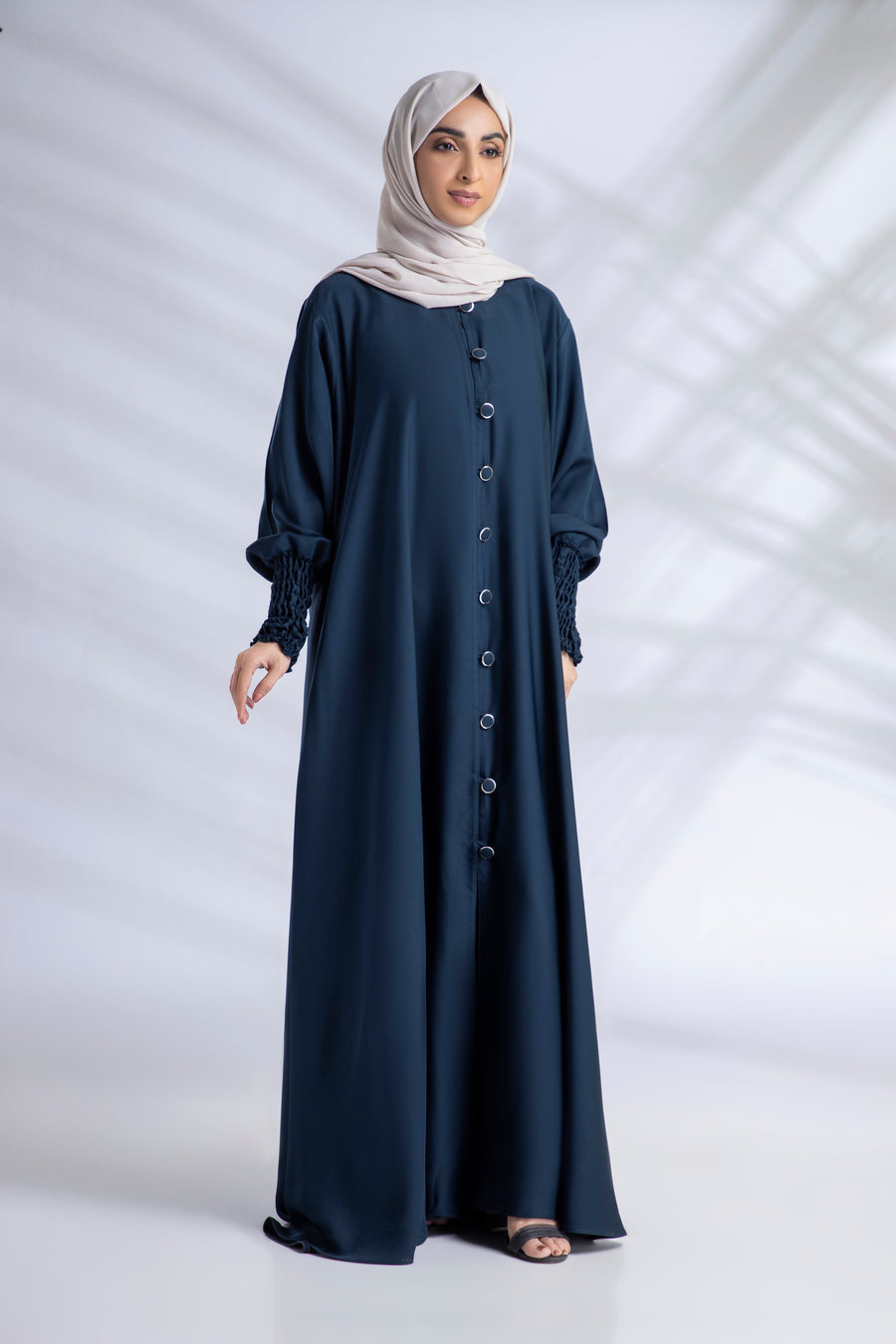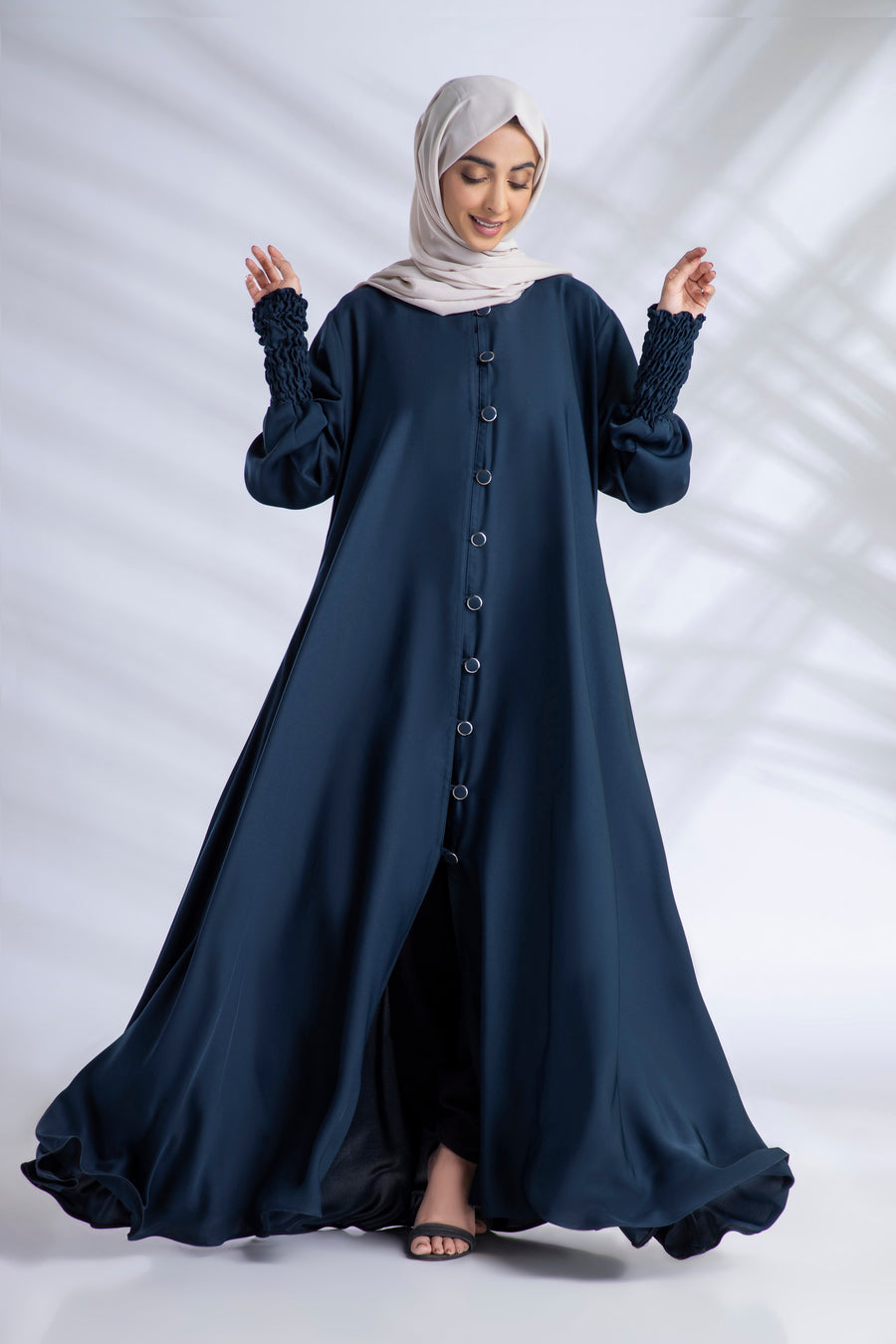 Level Up Your Wardrobe with the Cadet Blue Open Abaya With Buttons