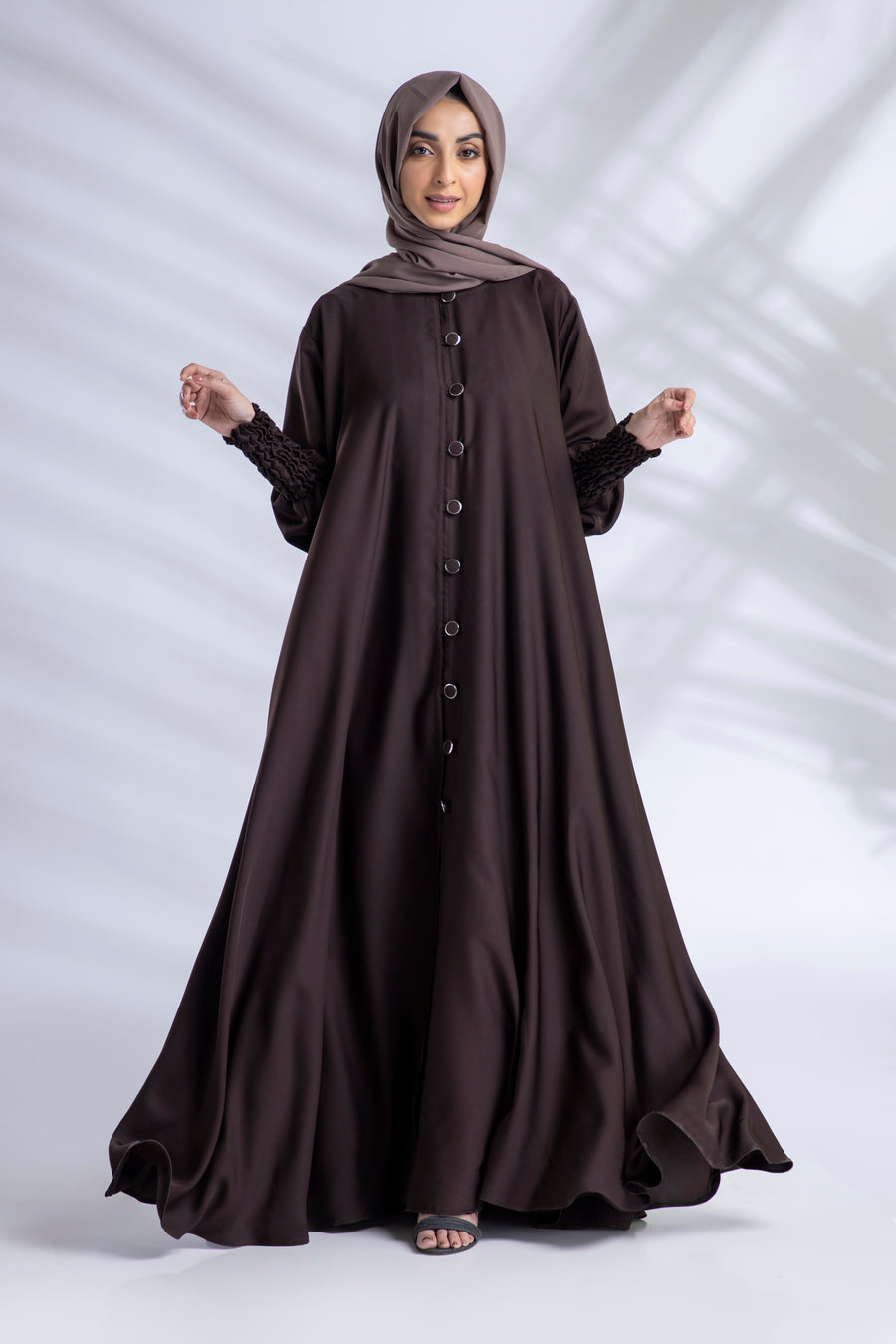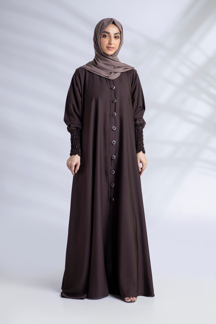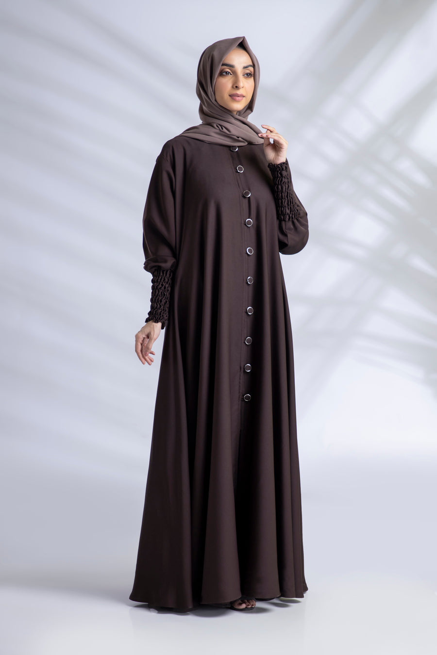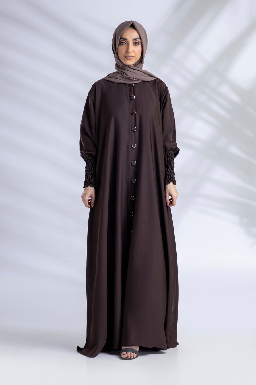 Shop Now Open Abaya With Buttons Turkish Style Elastic Sleeves
