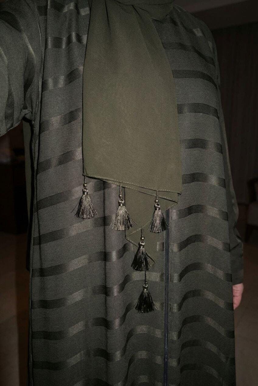 The abaya green color offers a bold yet subtle look that’s easy to pair with almost anything. If you love the mongia color abaya, this one offers a similar vibe but with a modern twist.